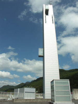 2006年10月3日 このシンボルタワーは高さ50m 塔内の階段を息をきらし230段上って来ました 飛び出た展望室のガラス外側にビニールが貼り付けられていますので きれいに見えない場所があります