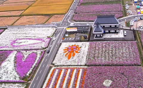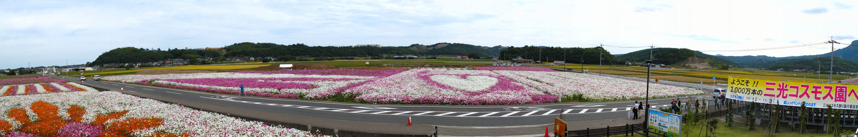 2010年10月22日 コスモス園展望所から ピンクと白のコスモスがハートのマークに植え分けられています