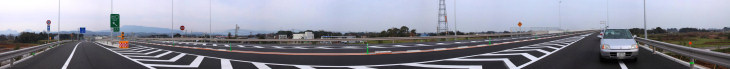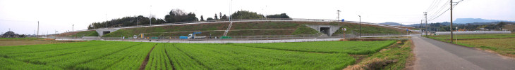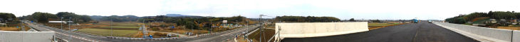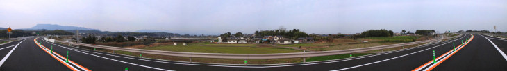 新しく開通する「中津日田道路3.6km」のパノラマ写真を撮影いたしました。