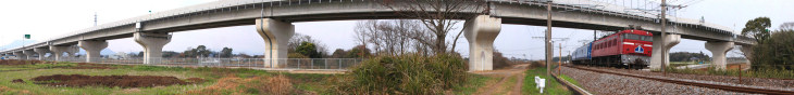 日豊本線と中津日田道路の架橋部分