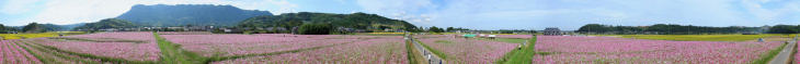 休耕田を利用したコスモス畑360度