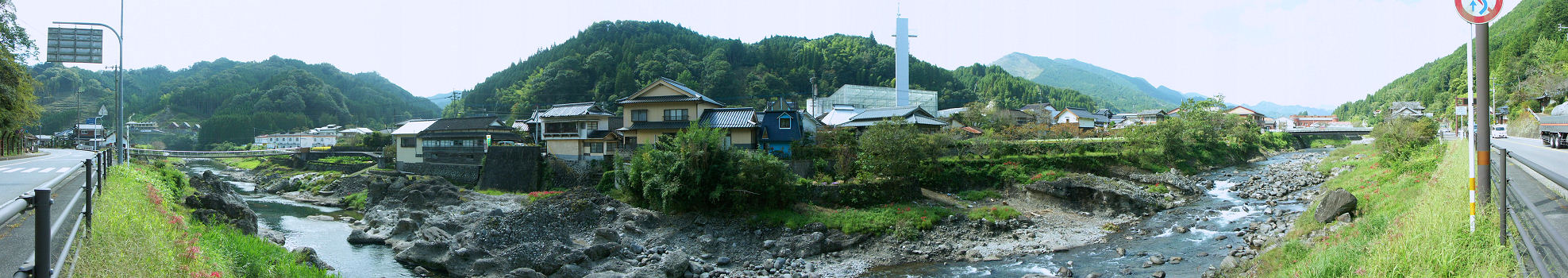 山国川と山国町中心部