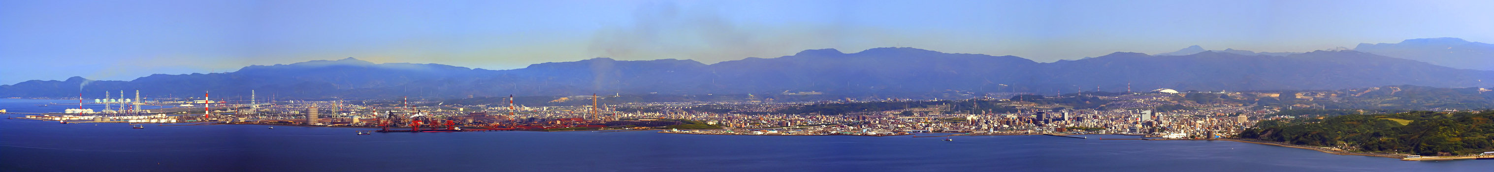 新産業都市大分工業地帯の煙が大分市上空を覆う様子がわかります