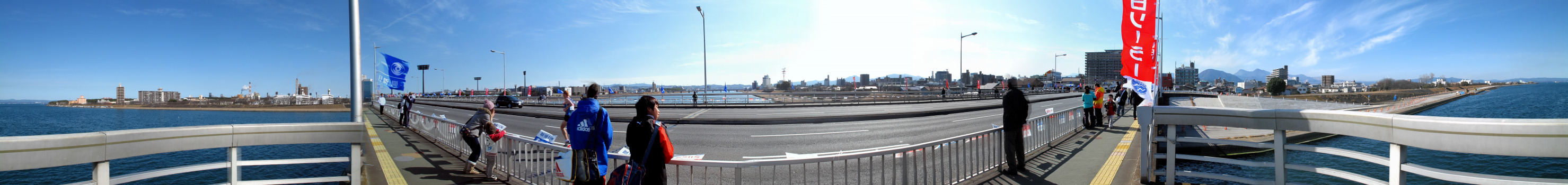 もうすぐマラソン選手が弁天大橋を通過