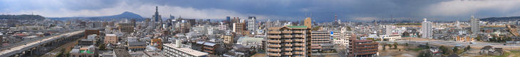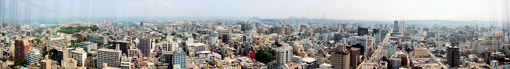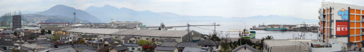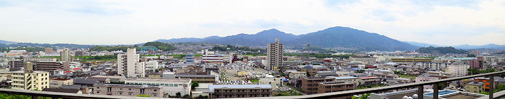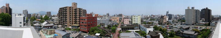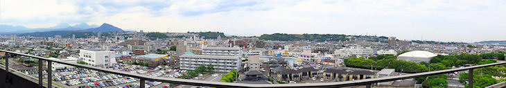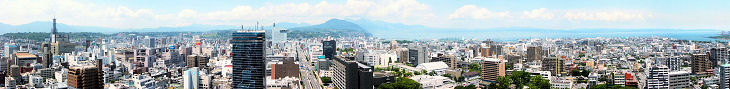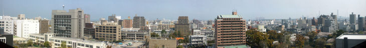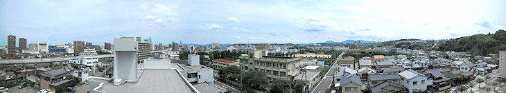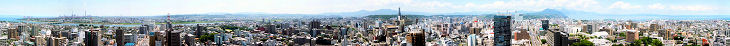 大分市内のビルの窓や屋上から大分市街をパノラマ写真で