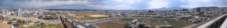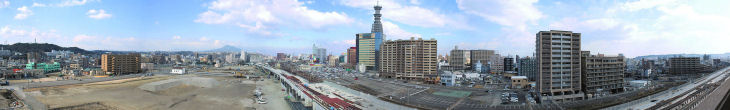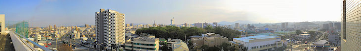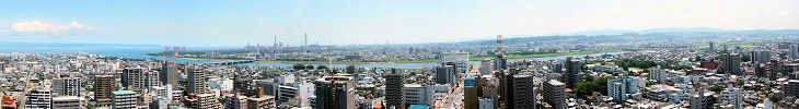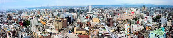 大分市内にも多くの高層ビルが目立ってきました、ビルの屋上などから市街をパノラマ写真で