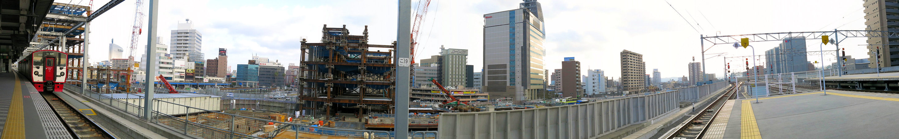 2014年2月24日撮影 1番線ホームから工事中の駅前を眺める