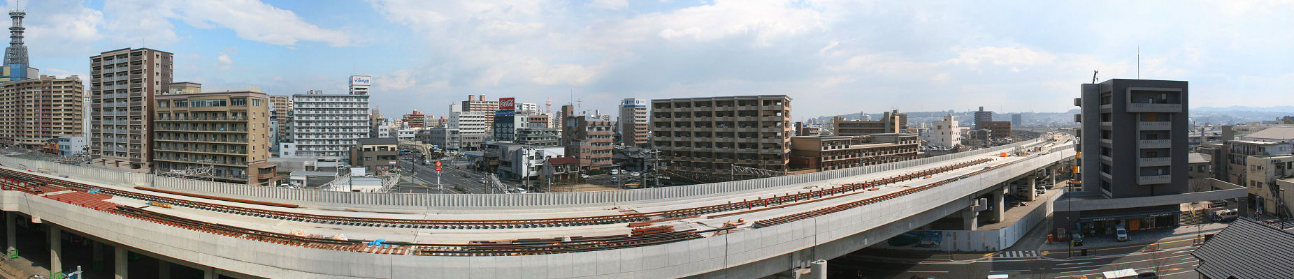 2008年3月4日 金池の踏切も鉄道と立体交差になりました 写真右で久大線と分岐しています