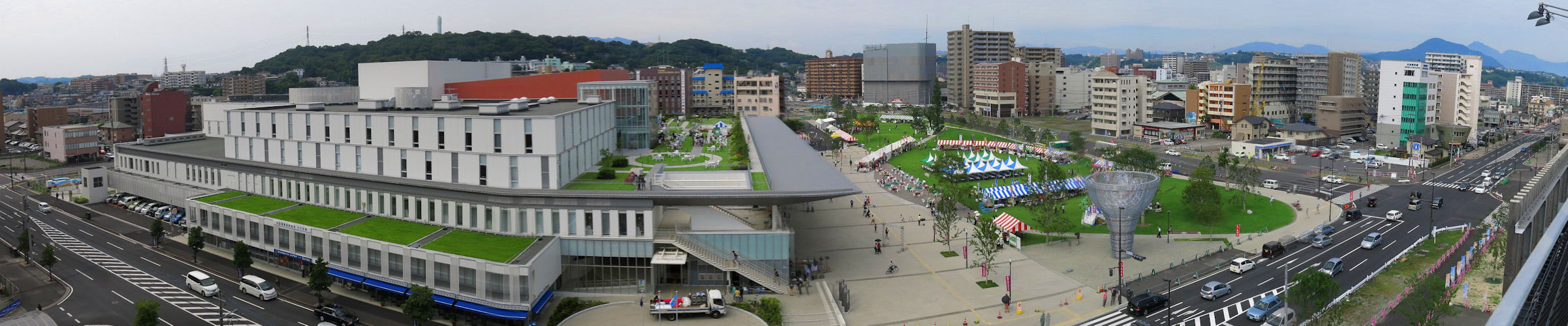 大分駅南口の立体駐車場屋上からホルトホールを