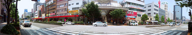 大分市の道路や繁華街のパノラマ写真