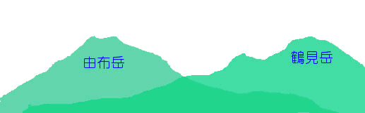 由布市の由布岳(1583m)と別府市の鶴見岳(1375m)の手前に小鹿山(728m)が偶然