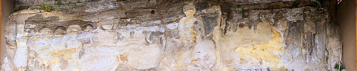 上野丘台地の東端の崖に彫られた元町石仏は平安時代に作られたもので