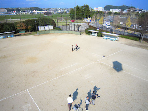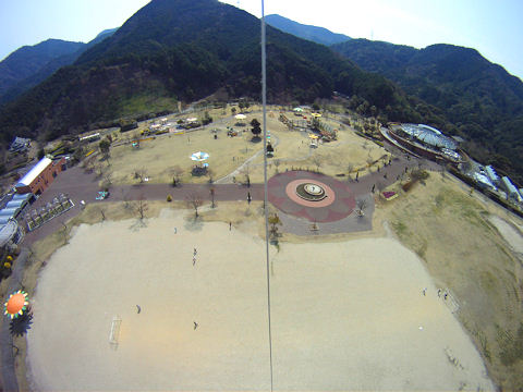 2011年12月14日撮影 大分市七瀬川自然公園グラウンドから凧揚げ空撮TOSテレビ大分取材中