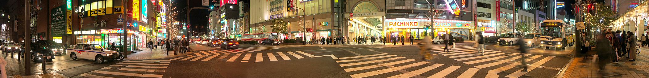 夜の繁華街スクランブル交差点