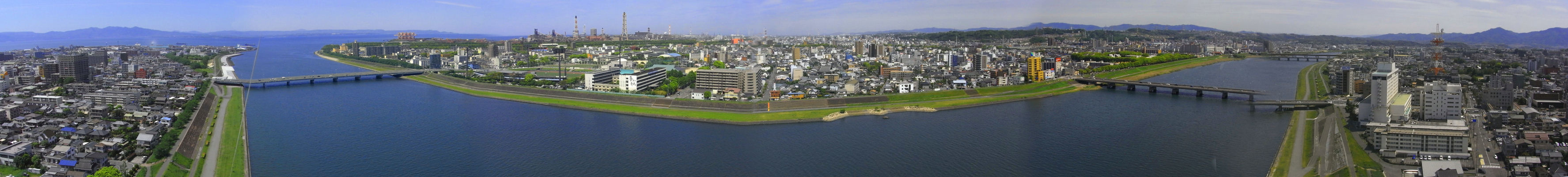 2010年5月7日撮影 大分川河口や東大分を望む大パノラマ 上から目線ですので橋などうまくつながっていないことが