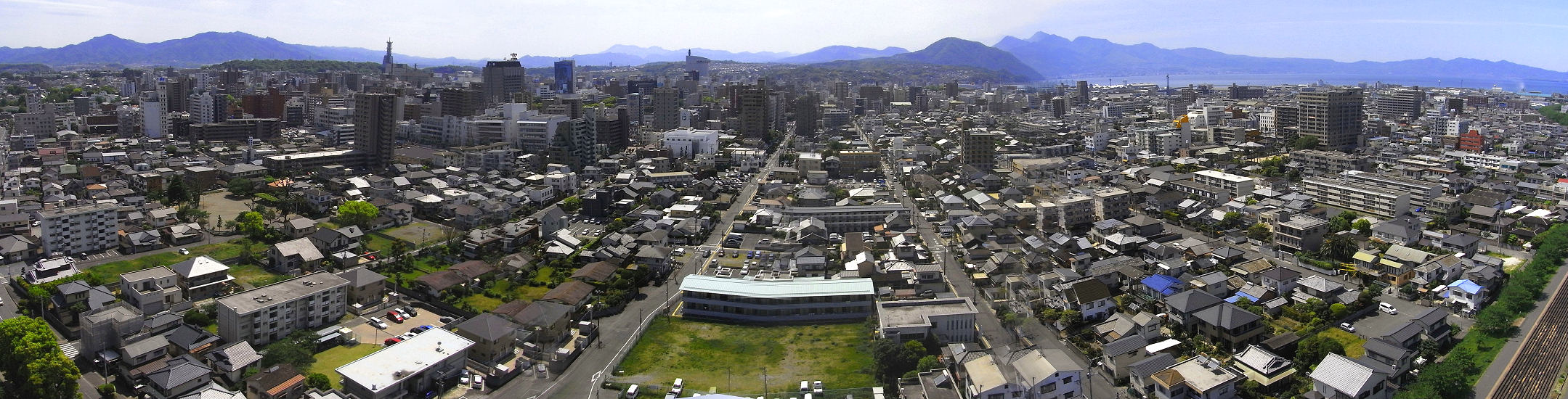 2010年5月7日撮影 大分市の中心部から遠くに高崎山 由布鶴見の山々と別府湾を望む風景です