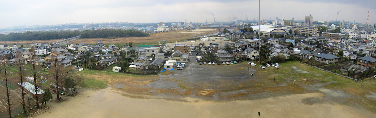 東鶴崎の公園から空撮合成パノラマで鶴崎を