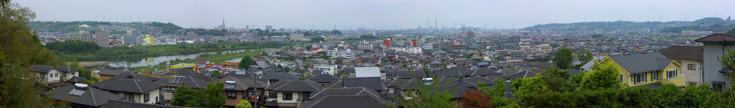 森岡小学校への坂道から大分市内を見る