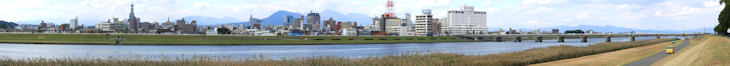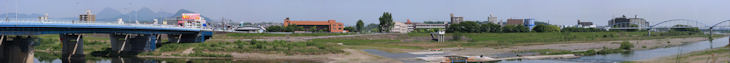 大分県中部を流れる大分川と周辺の大分市内でのパノラマ写真です。