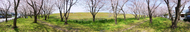 大分川河川敷から凧を揚げて撮影した写真複数枚を合成しパノラマにしました 写真1