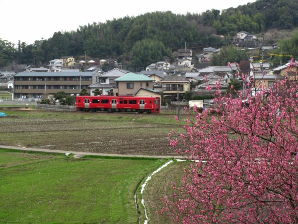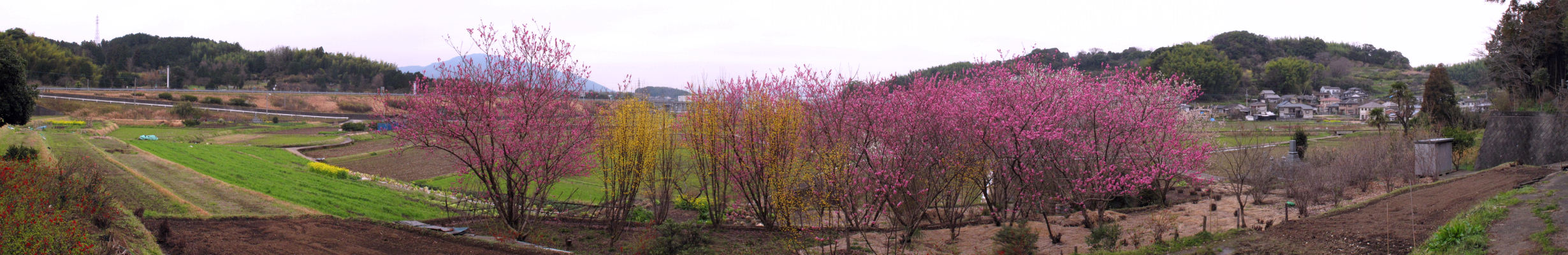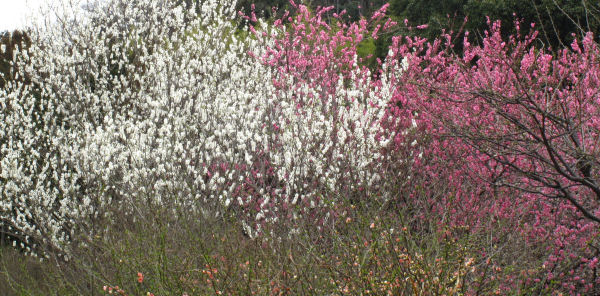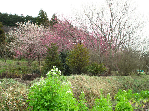 2009年3月8日 この時期、自動車道を通る度にこの美しいピンクや白や黄色の花が気になっていたので 撮影に来ました、あいにく曇っていて写真日和ではありませんが、きれいな春の景色です。