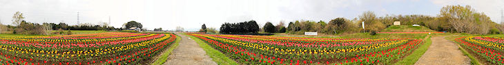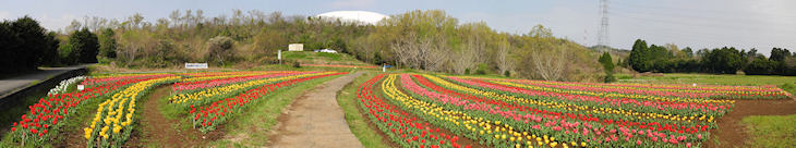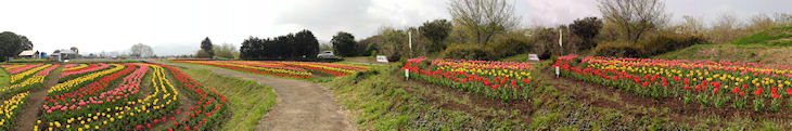 大分銀行ドーム近くの「市民花公園」では地元の「岡原花咲かそう会」が4万本のチューリップを咲かせています。
