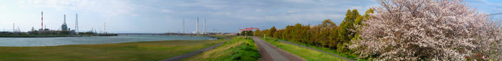 クリック→凧を揚げ凧から空撮した大野川と鶴崎