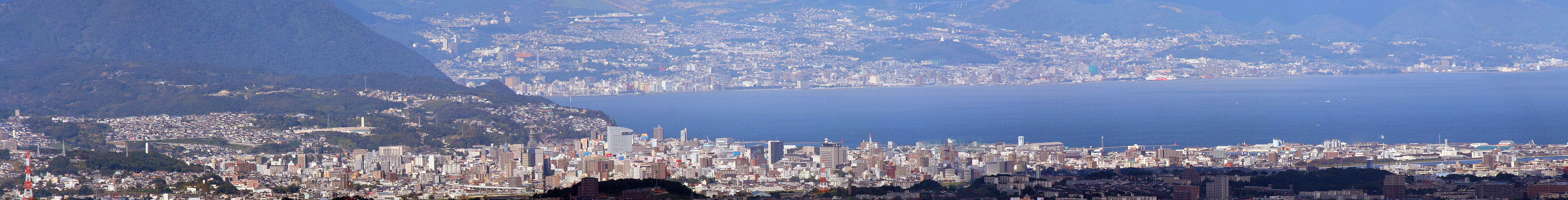 再進峠から大分市と別府市を望遠で