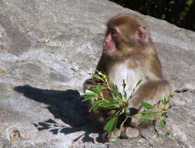 芋など大きな餌は強い猿が他の弱い猿の餌を横取りしてしまいます 平等に餌が行き渡るように小麦など小さい餌にしています また餌はわずかしか与えません ここは自然動物園です 猿は山の植物などで餌を摂るのが本来の姿ですから
