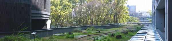 大分市役所増設部屋上では屋上の緑化実験をしています。
