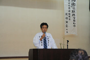 記念講演として 長崎から 龍馬楽 校長の柴崎賀広氏が長崎での資金集めや活動報告と