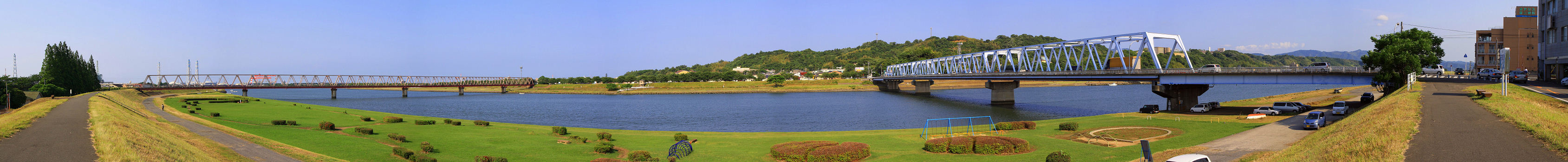 2009年6月6日 日豊本線鉄橋と鶴崎橋(右の橋)です