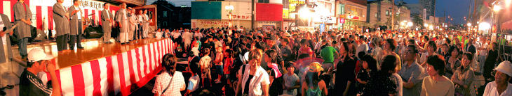 清正公祭りの夜、商店街は歩行者天国となり盛り沢山のイベントで大いに賑わいます。
