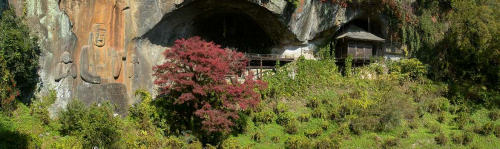 普光寺の崖には高さ11.3mと国内最大の磨崖仏が彫られています。