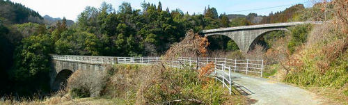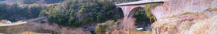 石橋の多い大分県ですが、ここ清川には径間が日本で一番と二番の橋が並んであります。