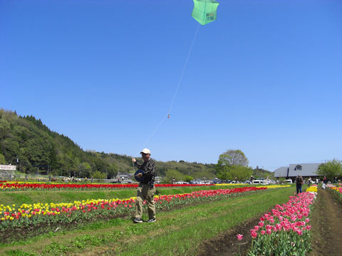 2010年4月6日 チューリップ会場から凧を揚げて空撮しました。