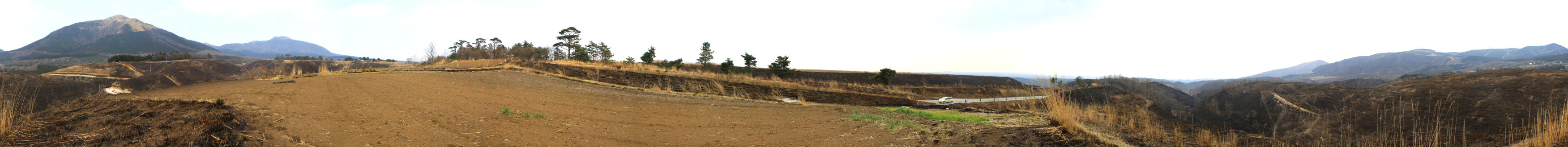 2009年4月8日 瀬の本高原から360度風景です 草原は野焼きが終わったばかりです。