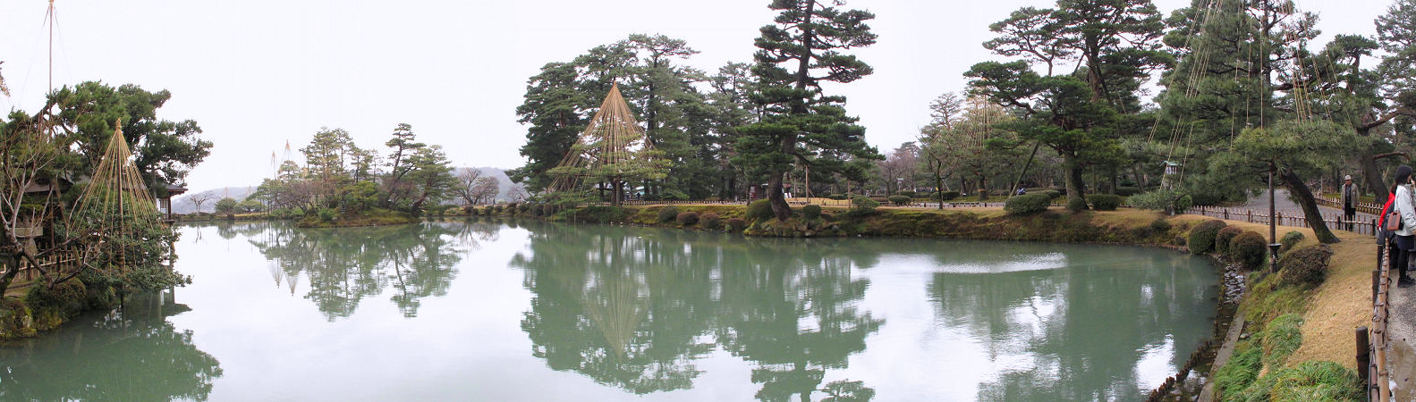 2009年2月14日 兼六園では11月から雪吊り作業が始まるそうです 雪景色を見られず残念ですが天下の名園。