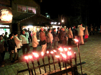 パノラマン達観光客も希望者は1000円で参加できるこの祭りに松明を持って参加しここまで歩いてきました。