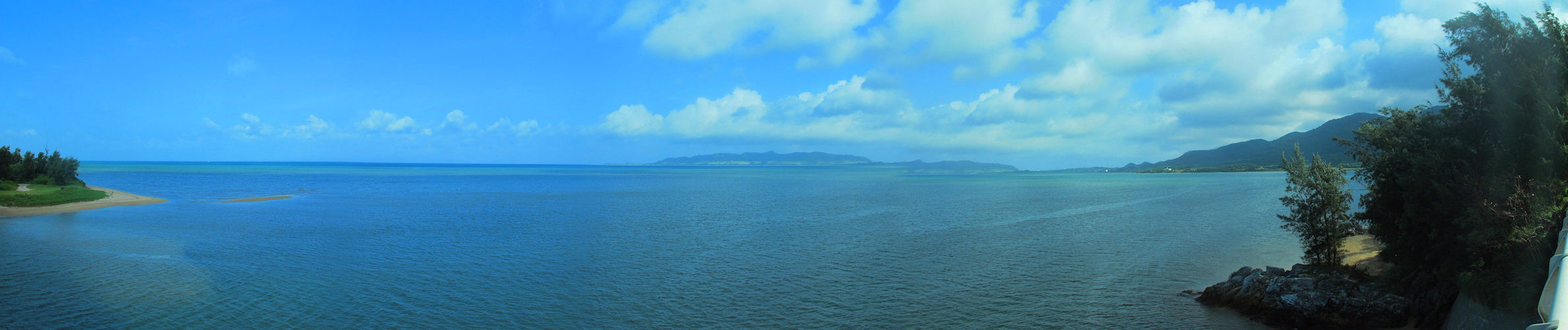 満潮時名蔵大橋から海の方を眺める