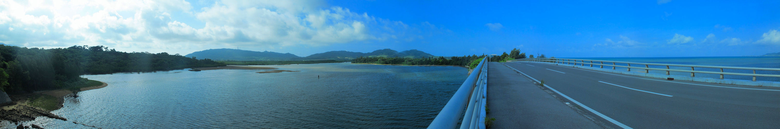 満潮時名蔵大橋からアンパル干潟方面を眺める