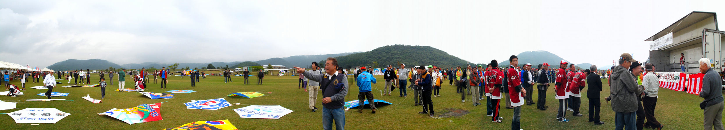 2010年10月31日 開会式が終わりこれから各自持参の凧をあげます これは凧合戦用の六角凧