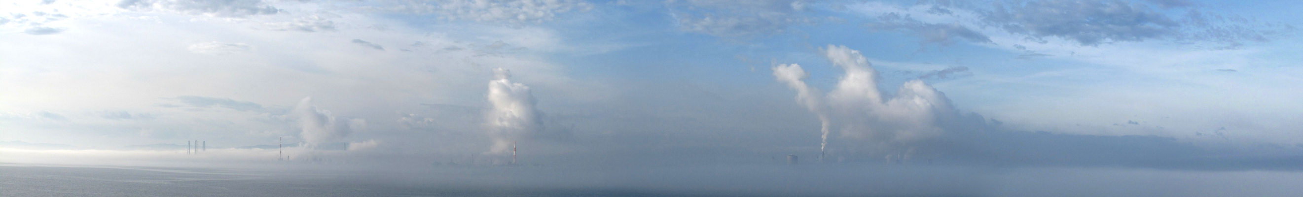2011年5月21日 別府湾に霧がただよい遠くの煙突などだけが見える不思議な風景で迎えてくれました