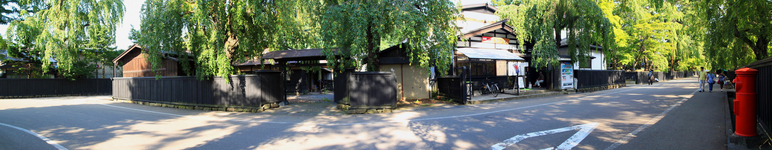 2010年8月5日 角館は黒い塀の武家屋敷が知られています 通りは九州各地の武家屋敷通りより広く 九州では土塀が多いのにここでは黒く塗られた木の板の塀です。 大きな木がたくさん植えられているのも特徴的な風景でした。