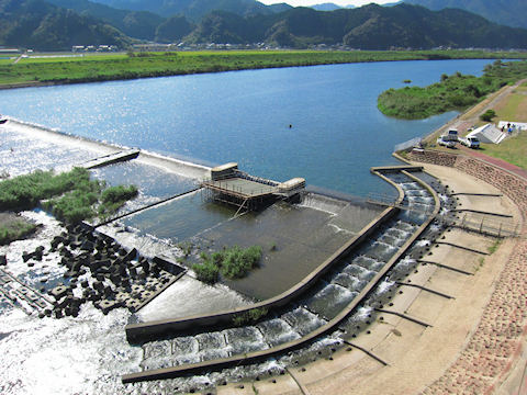 2011年5月 番匠川の小田井堰に全く水がありません 3月〜4月の降水量が少なかったからです
