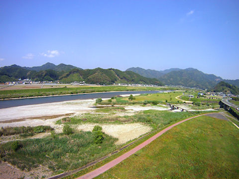 佐伯市の旧弥生町を流れる番匠川と井崎川の風景です。