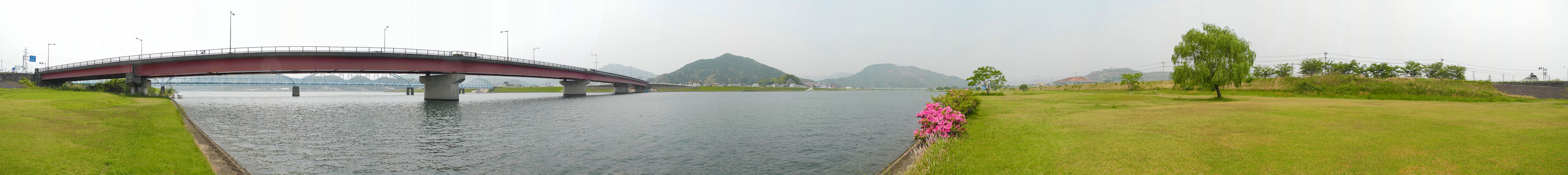 佐伯新大橋と番匠川河川敷ゴルフ場跡