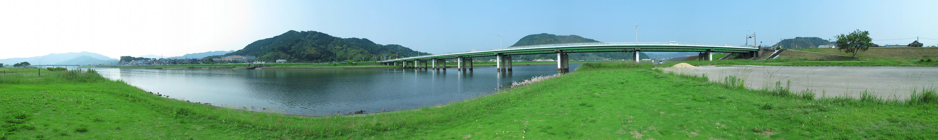 河川敷ゴルフ練習場から佐伯大橋を見る