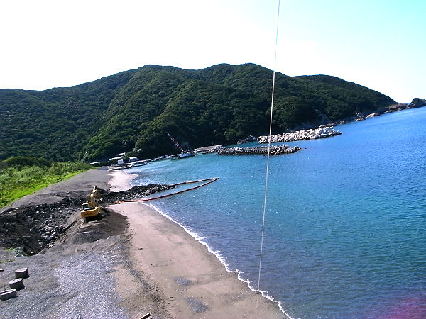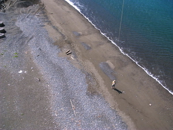 間越海岸砂浜から凧を揚げて空撮してみました ビーチは只今工事中で入れません。