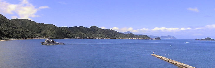 19日は海の日で佐伯市でも各種イベントがあったようです 海上自衛隊多用途支援艦「げんかい」と海上保安庁巡視艇「わかぐも」の体験航海がありました。 下の写真は凧を揚げて撮影しました。 多用途支援艦「ひうち」に体験航海した時のデッキから360度風景←クリック